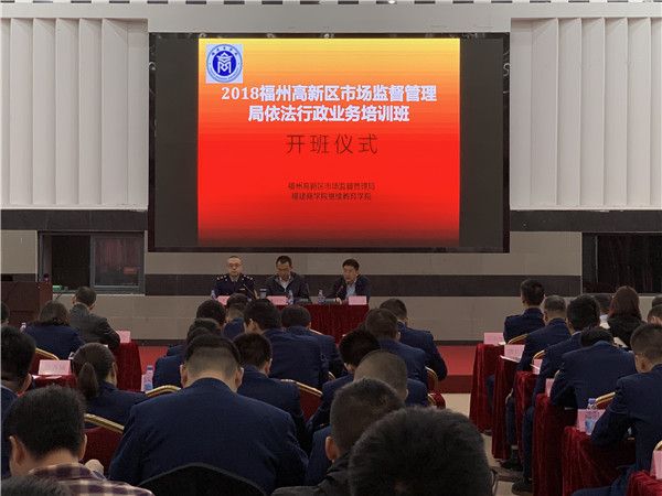 12月6日-7日,由福州高新区市场监督管理局主办,我院承办的“2018年福州高新区市场监督管理局依法行政业务培训班”在福建中医药大学国际中医药培训中心开班。福州高新区市场监督管理局副局长李迎春,福州高新区党工委委员、管委会副调研员熊国华,副院长方方以及来自福州高新区市场监督管理局的干部职工、各企业人员共107名学员参加培训,开班仪式由李迎春主持。